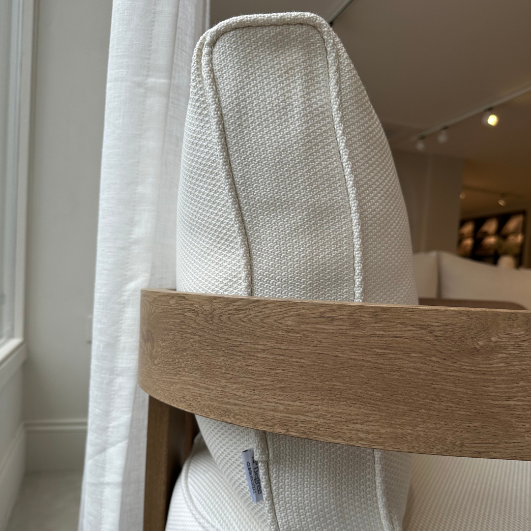 Covered in the exquisite Cirrus Textured Weave outdoor UK fire rated fabric, the chair’s cushions are a statement of refined taste and innovation. This fabric selection is a masterpiece of design, blending a delicate interplay of light and texture that captures the essence of cloud patterns. Crafted from the highest quality acrylic, the Cirrus Textured Weave cushions bring a tactile dimension to the chair, inviting one to experience luxury that is both seen and felt. The weave’s intricate pattern also offers extraordinary resistance to wear, ensuring that the cushions remain impervious to water, mildew, and the fading effects of sunlight. This ensures that even after a refreshing summer rain or under the gleaming sun, the chair quickly returns to its state of dry, plush comfort, ready to embrace without delay.